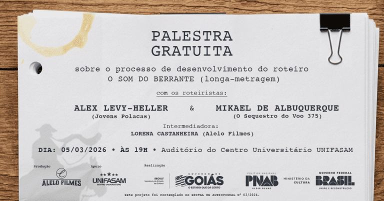 No dia 05 de março, às 19h, no Auditório – Bloco II, nossos estudantes terão a oportunidade de participar de uma palestra especial e totalmente gratuita realizada pelo Governo de Goiás, sobre o processo de criação e desenvolvimento do roteiro do longa-metragem O SOM DO BERRANTE.